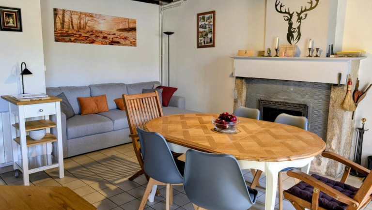 Le gîte est entièrement équipé pour un séjour agréable avec une cuisine moderne et un salon confortable.